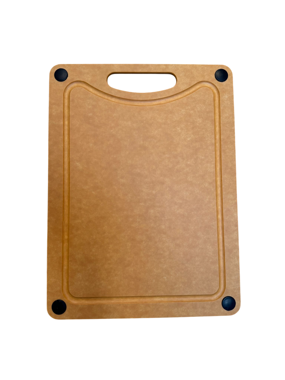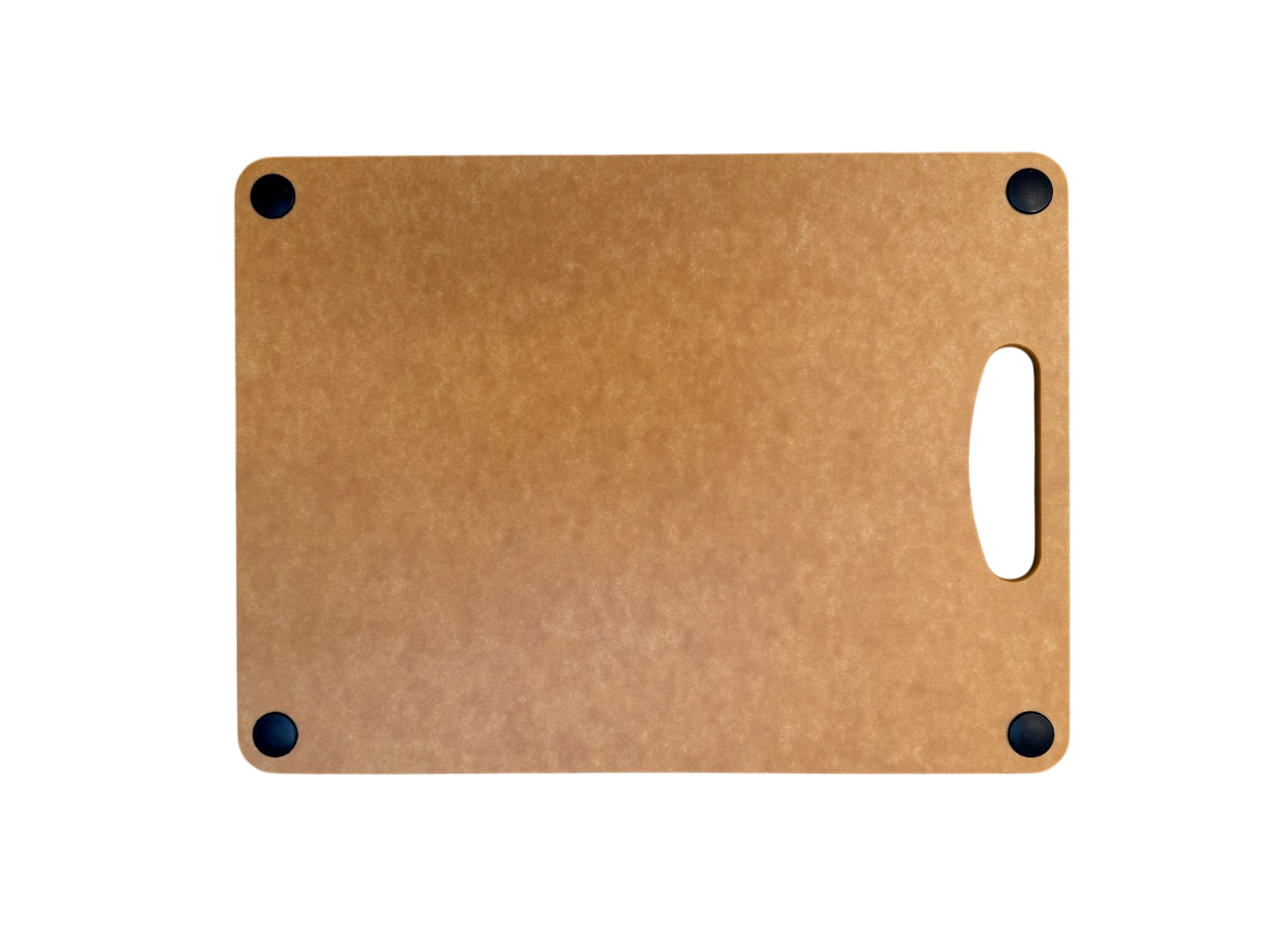 De plank is gemaakt van FSC-gecertificeerd hout, pulp en hars. De dunne en lichte snijplank is hygiënisch en watervast. Hij mag dus gewoon de afwasmachine in.