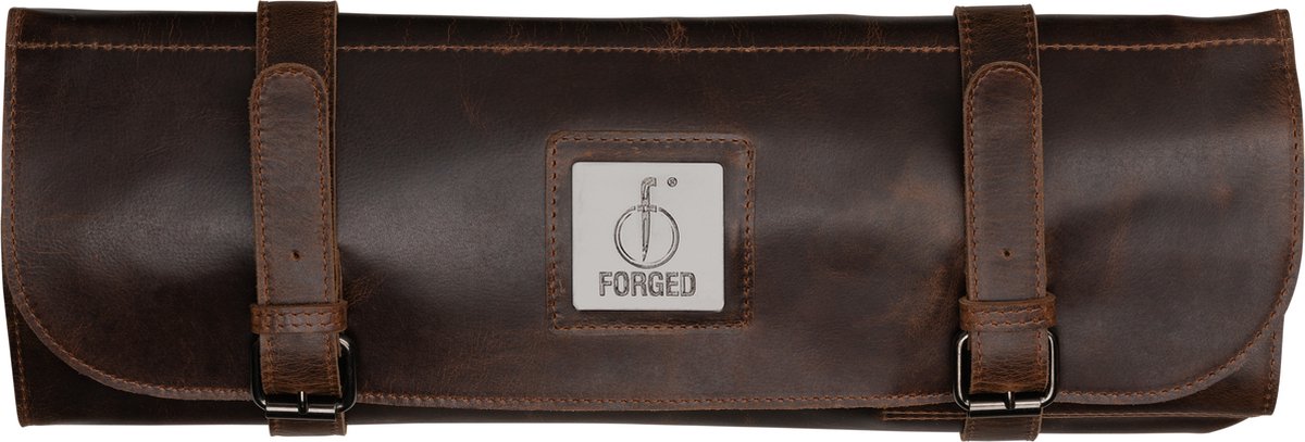 Bescherm je messen met stijl! Ambachtelijk gemaakt van 100% pull-up rundleer en 1,5 mm dik. Biedt ruimte voor 8 messen en 3 compartimenten voor kleine voorwerpen of schilmesjes. Bevat een ruim apart vak dat sluit met een rits voor keukengerei. Ideaal voor het veilig transporteren of opbergen van je messen. Onderhoud de foedraal met de Forged onderhoudskit om hem in optimale conditie te houden. Het is normaal dat het leer door het uitrekken wat lichter wordt. Leer wordt met gebruik steeds mooier en gaat een leven lang mee bij goed onderhoud. Ga voor de ultieme stoere look en ongeëvenaarde kwaliteit met Forged.