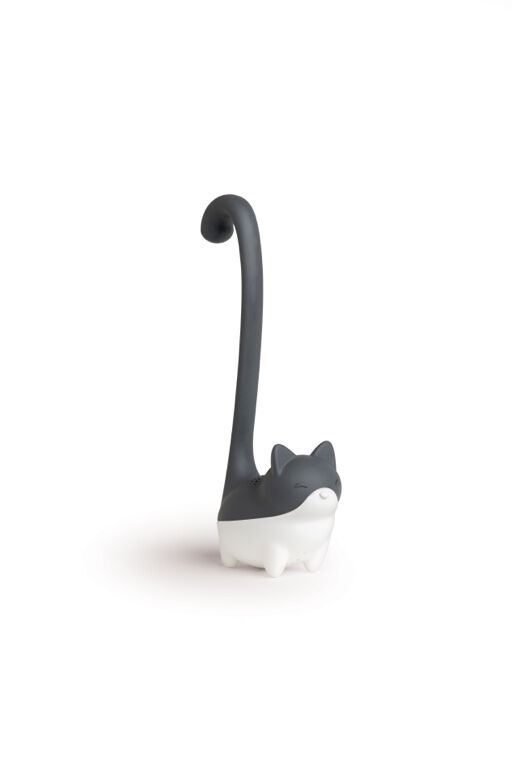 De Ototo Louie thee-infuser is gemaakt van wit met grijs siliconen. Het thee-ei is vormgegeven als een kat. Het lijfje van de kat kan gevuld worden met thee.