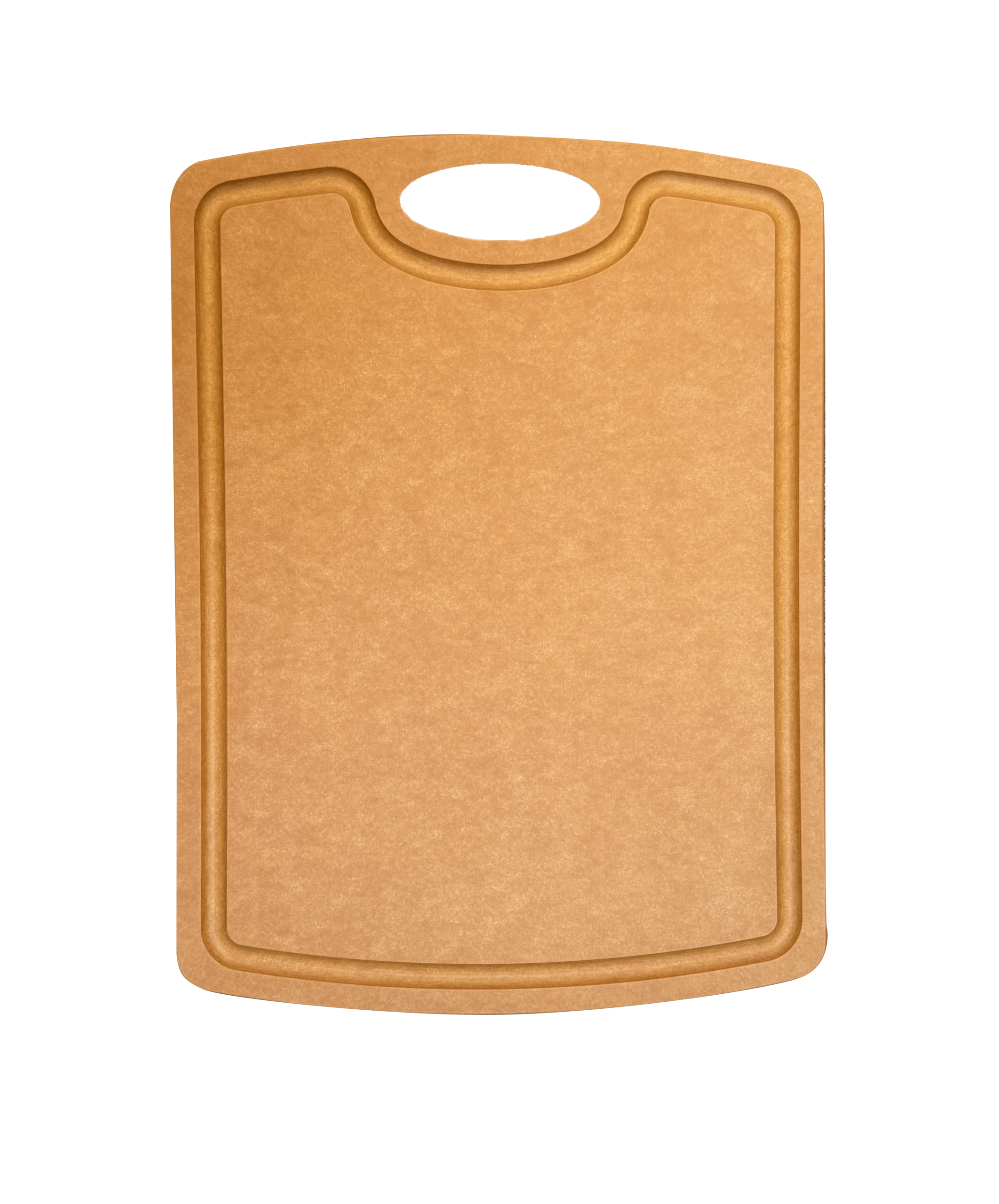 De plank is gemaakt van FSC-gecertificeerd hout, pulp en hars. De dunne en lichte snijplank is hygiënisch en watervast. Hij mag dus gewoon de afwasmachine in.